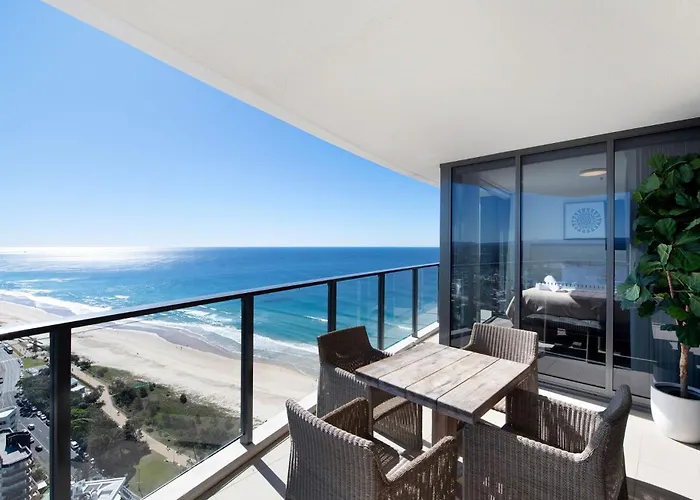 El Rhapsody Stunning Ocean Views Apartment - Coasthm Gold Coast está situado en una zona residencial de Gold Coast a 4 km del Restaurante Cabaret Drácula Gold Coast. Este apartamento, situado muy cerca de King Tutts Putt Putt, ofrece una piscina exterior durante todo el año y un jacuzzi, bañera de hidromasaje y sauna.